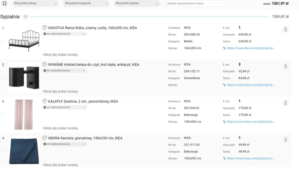 Na podstawie zdjęć i analizy Twojej nieruchomości przygotuję kompletną listę rzeczy do kupienia, która obejmuje: